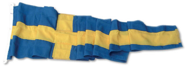 Flaggväven i vimpeln är tillverkad av separata spunna filament som bildar ett mycket starkt garn. Väven i 100% polyester är framtagen och anpassad för våra tuffa nordiska klimat.
