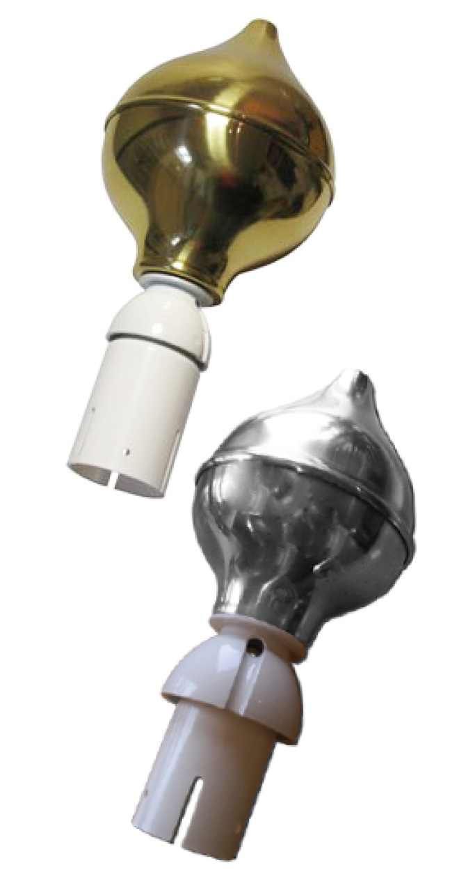 Vår flaggstångskula i metall tillverkas med transparant skyddande lack och levereras komplett med hylsa och rotationsdel.
